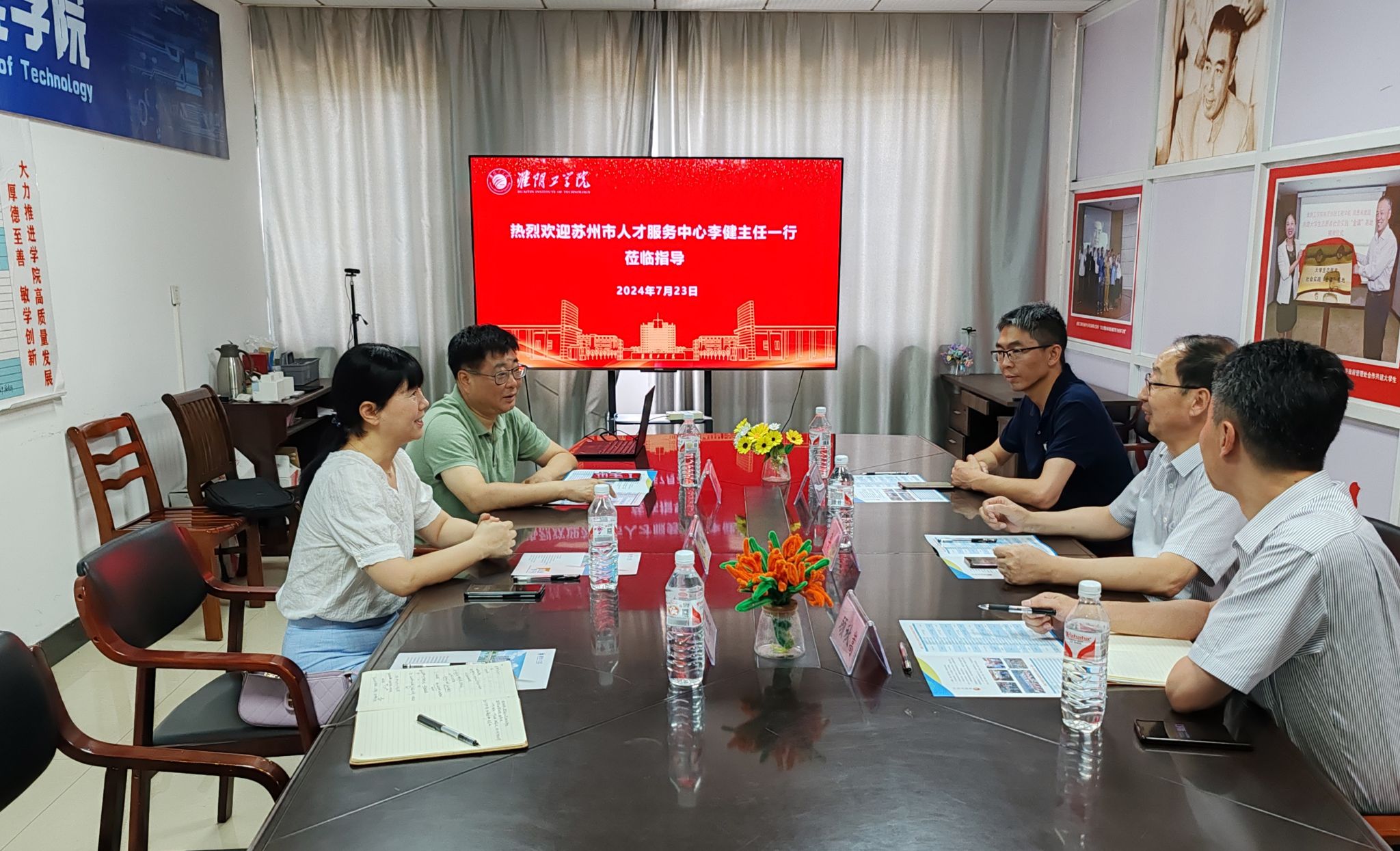 7月23日下午,苏州市人才服务中心主任李健一行来校洽谈“人才驿站”校地合作事宜。党委常委、副校长赵玉萍出席会议。