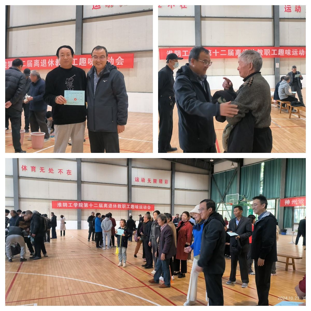为进一步丰富离退休教职工的精神文化生活,展现新时代银龄风采,10月23日下午,我校第十二届离退休教职工趣味运动会在北京路校区风雨操场举行。校党委副书记、副校长吴建华宣布运动会开幕并观看赛事。