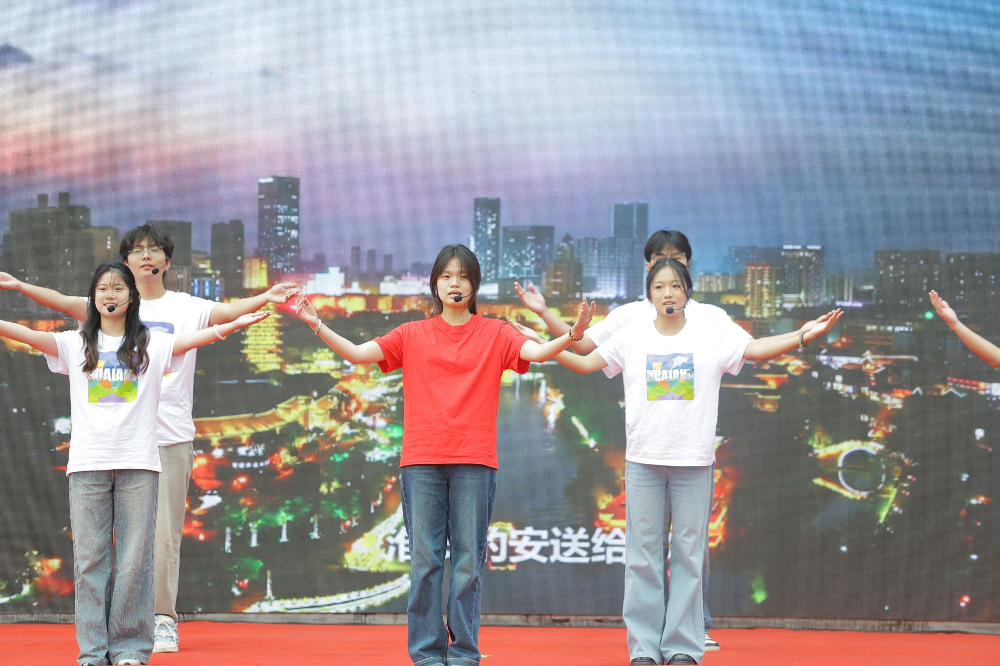 校文化艺术中心与大学生艺术团联合呈现歌舞《献给老师的歌》,以真挚旋律与灵动舞姿诠释师恩难忘;原创歌舞《淮安的安是什么》,通过艺术表达探寻城市文化底蕴,引发在场师生的共鸣。