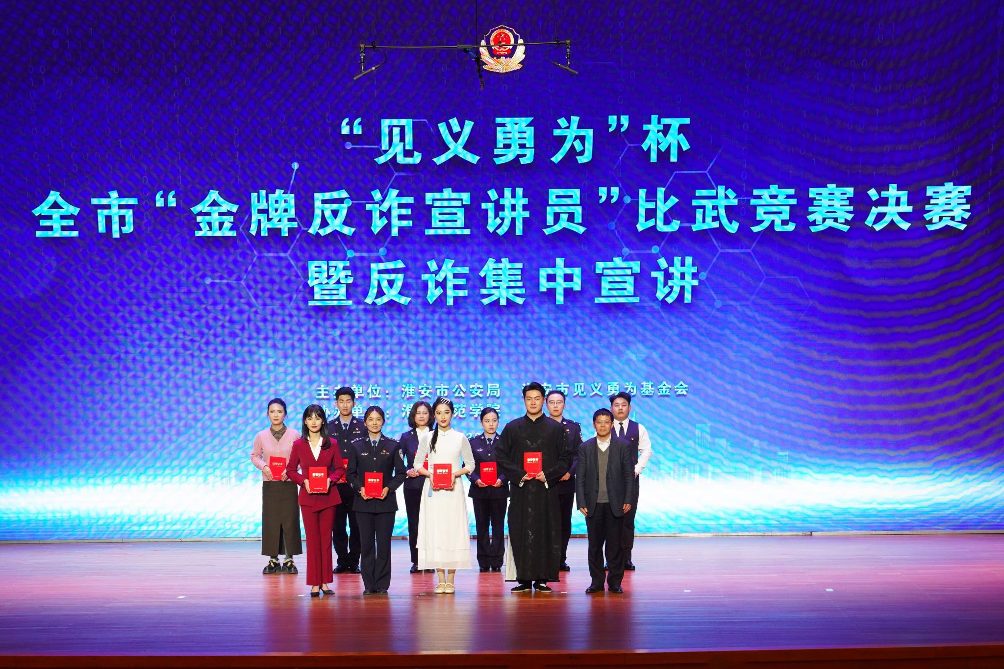 11月28日,由淮安市公安局、淮安市见义勇为基金会联合主办的“见义勇为”杯全市“金牌反诈宣讲员”比武竞赛决赛暨反诈集中宣讲活动举行。经激烈角逐,我校法治宣讲员周慧媛老师带领学校反诈宣传队荣获二等奖。