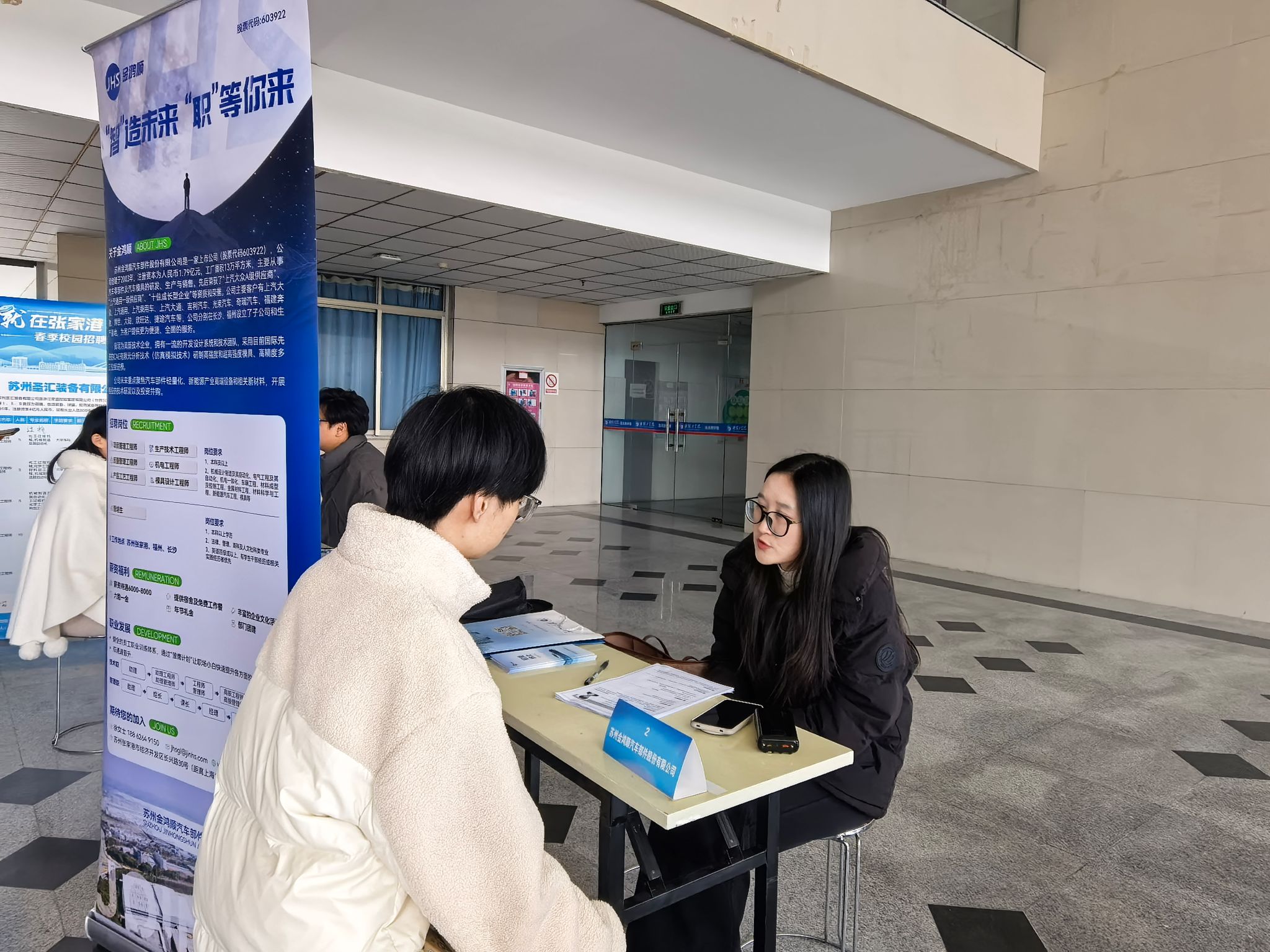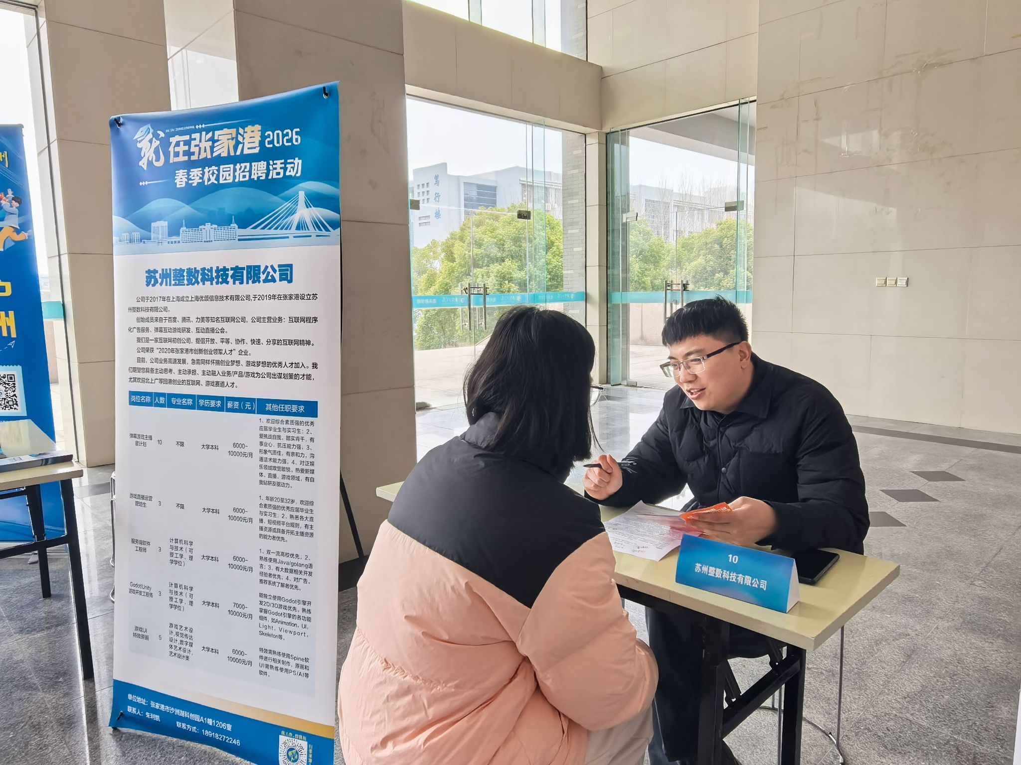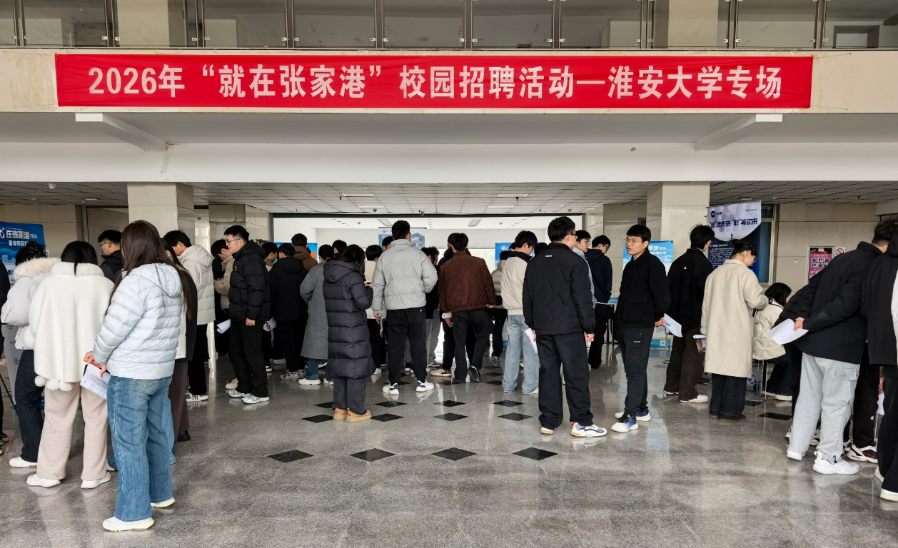 3月16日下午,我校在枚乘路校区逸夫楼二楼大厅举办2026年张家港企业春季专场招聘会,校党委副书记秦家沛到现场调研指导工作。