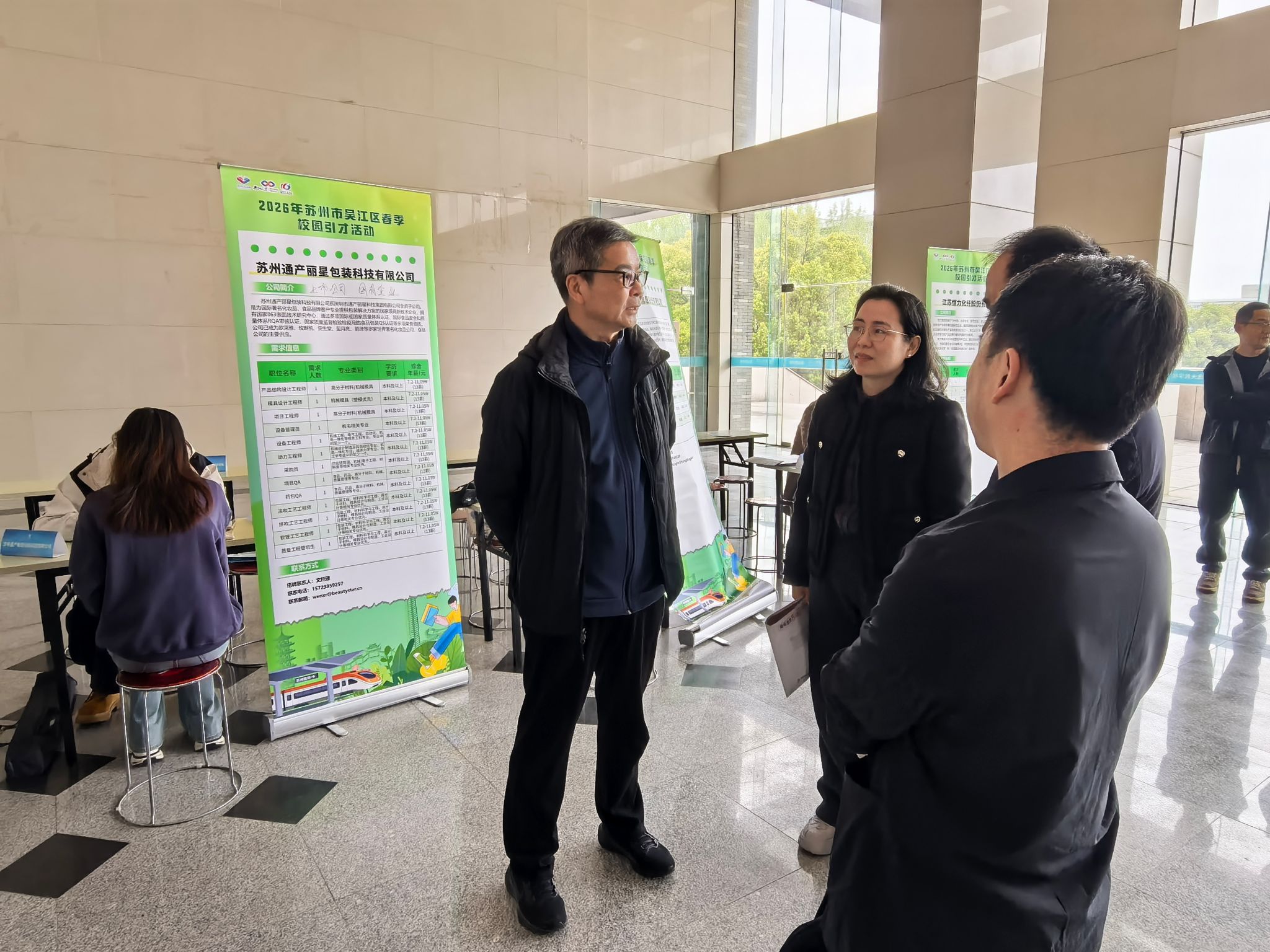秦家沛与吴江区人社部门领导深入交流,听取用人单位对行业发展态势、就业市场形势及人才需求的研判分析,就深化产教融合、加强校企协同达成共识。他表示,学校将与各单位携手构建长期稳定、深度融合的校企合作长效机制,全力推动资源共享、优势互补、互惠共赢、协同发展。希望以此次交流为契机,进一步拓宽校地合作广度、深化校企协同效度,持续优化就业服务保障体系,精准提升人才供需对接效能,全力促进毕业生更高质量、更充分就业。